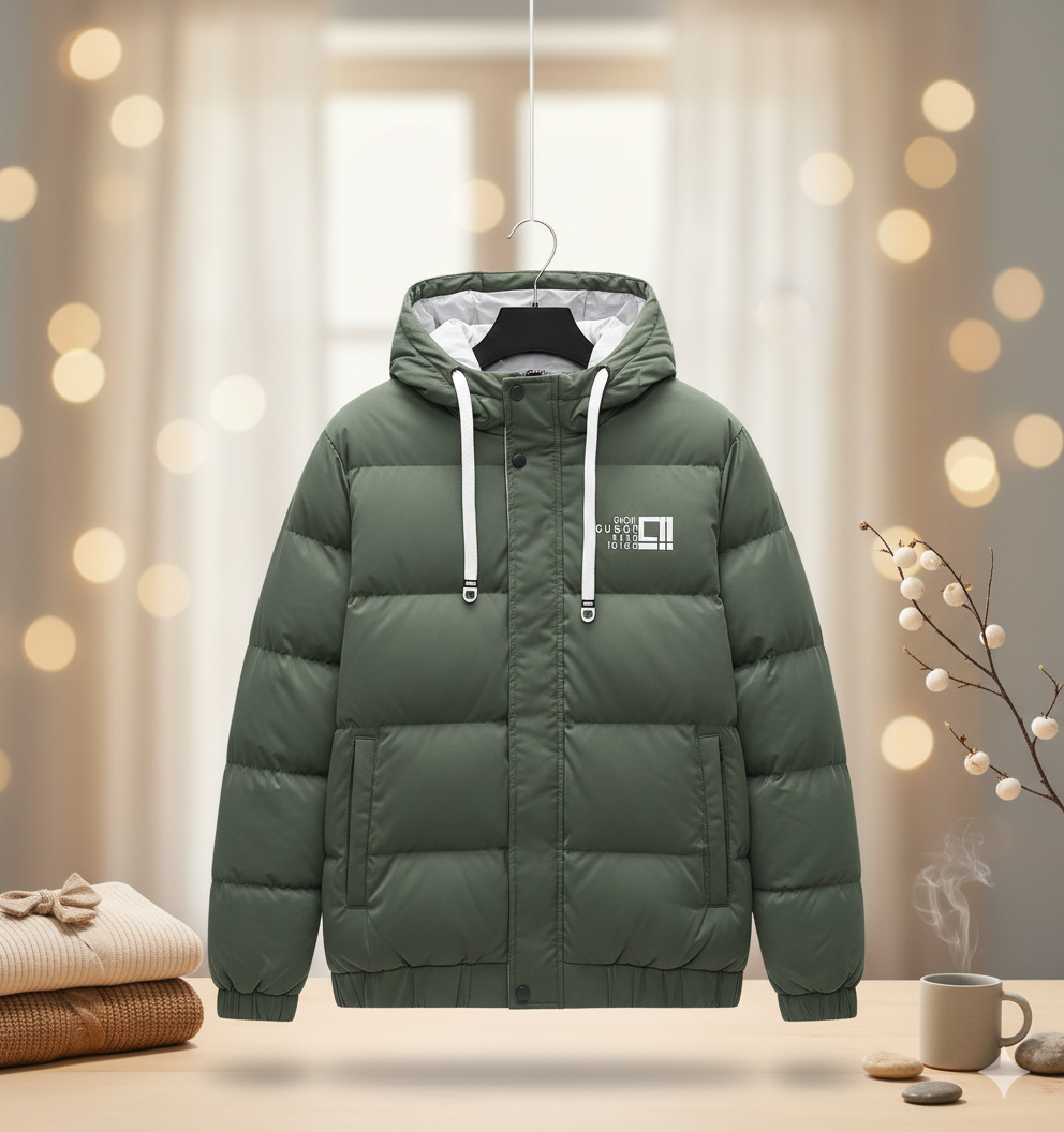 Men's Premium Olive Green Hooded Puffer Jacket – Ultimate Winter Warmth