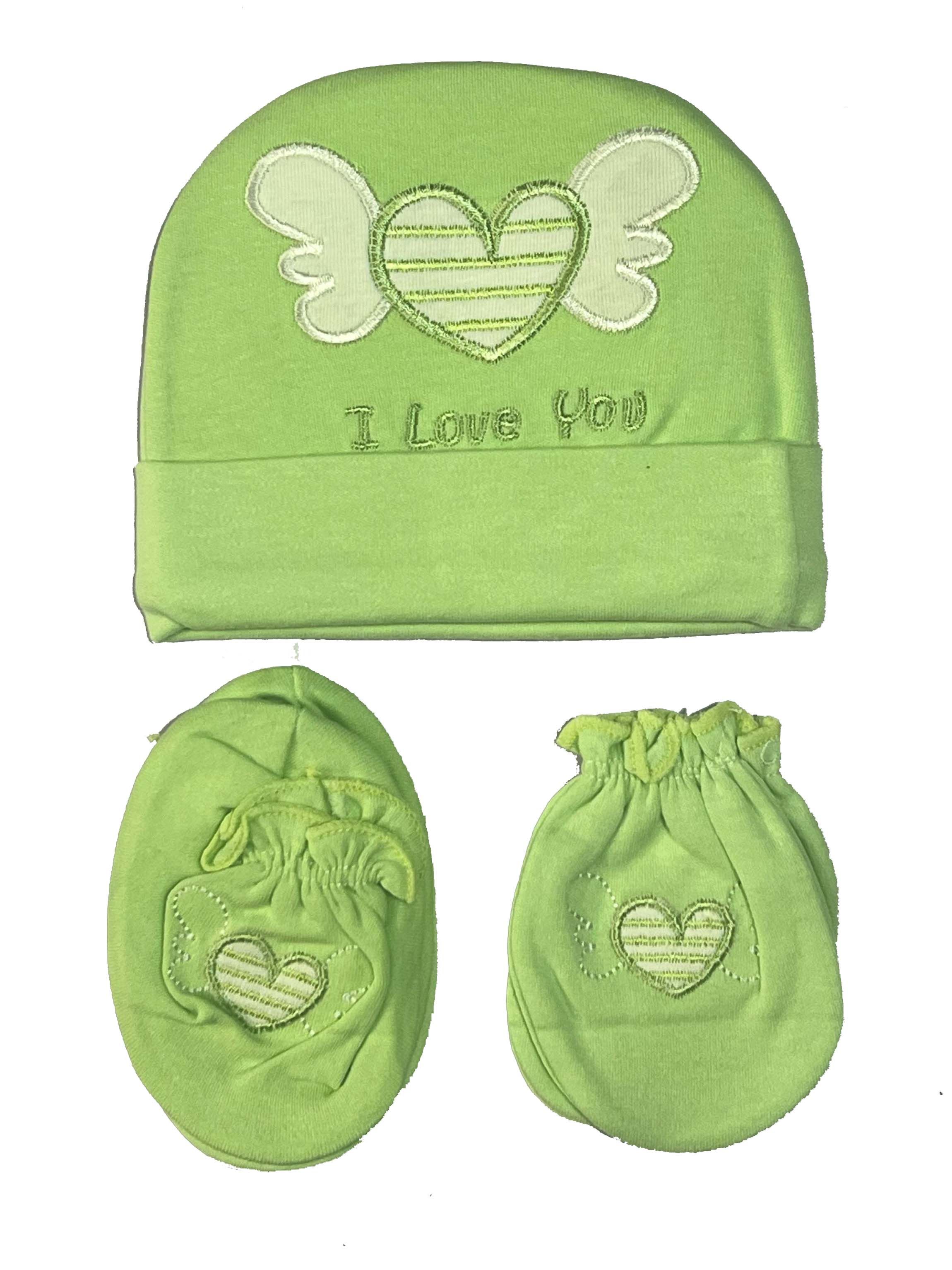 "Keep your little one cozy and stylish with this adorable 3-piece accessory set. Crafted from high-quality, breathable cotton fabric, this set is designed to provide maximum comfort for a baby’s delicate skin. The vibrant lime green color adds a cheerful touch to any outfit, making it perfect for daily wear or as a thoughtful gift for newborns."