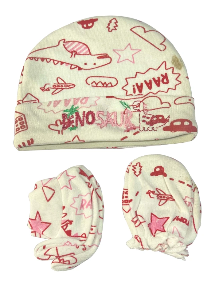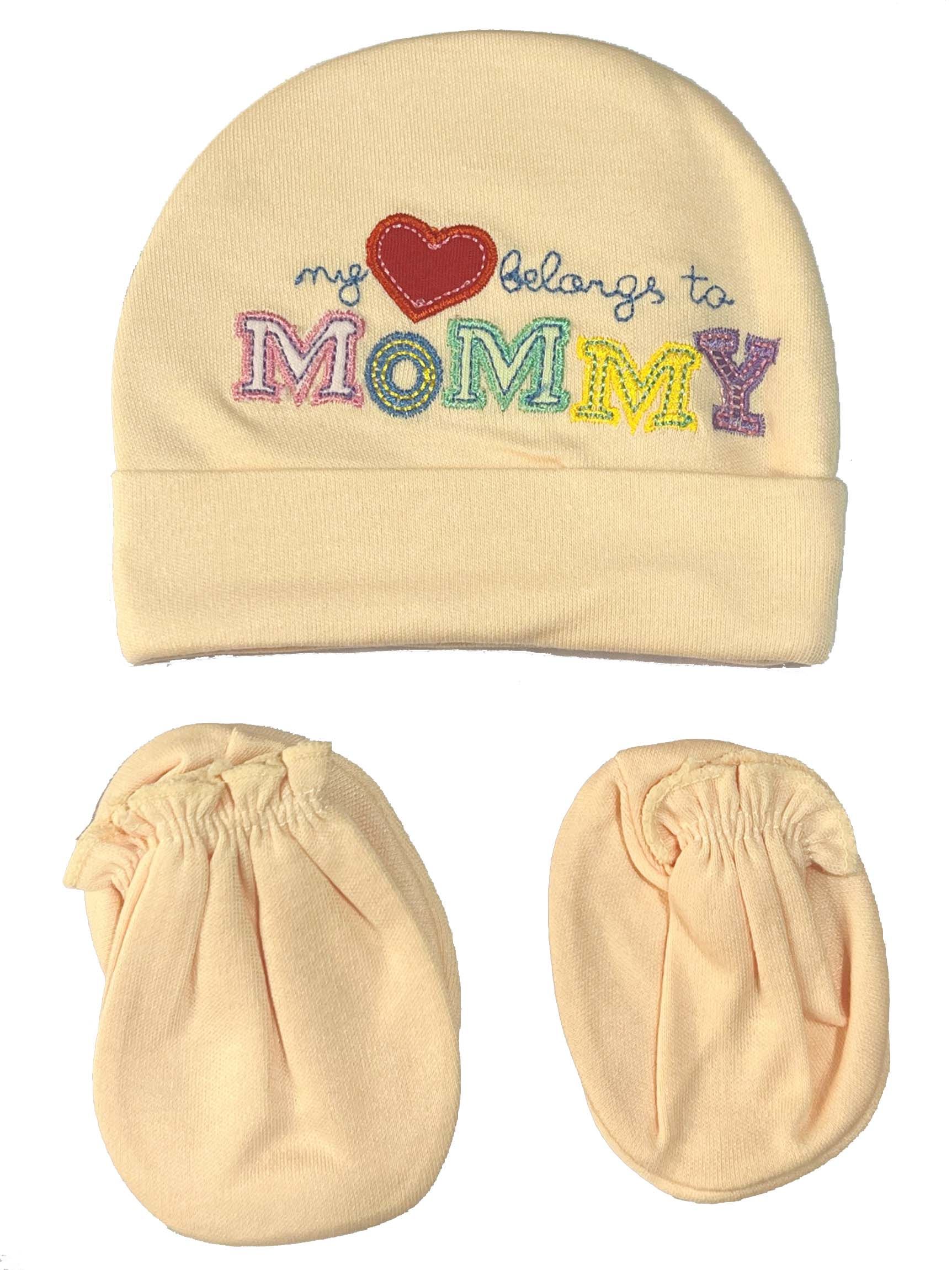"Keep your little one cozy and stylish with this adorable 2-piece accessory set. Crafted from soft, breathable cotton-blend fabric, this set is designed for ultimate comfort against a newborn's delicate skin. The warm peach tone provides a classic look, while the vibrant multi-colored embroidery adds a playful, heartfelt touch that makes it a perfect gift for new moms or baby showers."